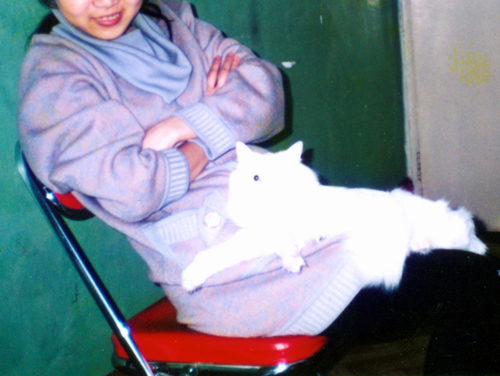 咪咪是我们出国前养的一只猫,全身雪白,一只蓝眼,一只黄眼,在她三个月的时候来到我家。刚进门那一刹那,有点象《红楼梦》里的林妹妹初进贾府,“闲静犹似花照水,行动好比风拂柳”。咪咪真的很漂亮,但身体也很弱,耳朵还经常发炎出水。当时,也没有什么宠物医院,是我一点点用棉棒把她耳朵里的脓水给弄出来的。她虽然很痛,但从来也没有抓过我。后来她的耳朵渐渐好了,身体越来越结实了,和我的感情也越来越好起来。