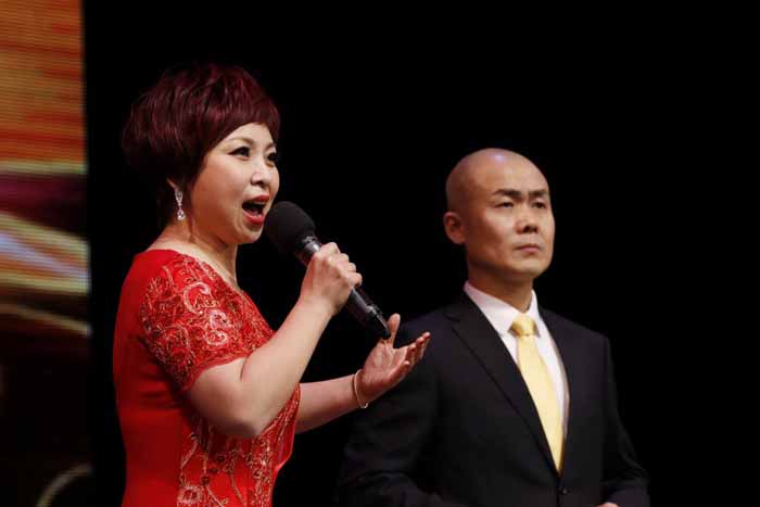 副总领事庄耀东与青年演员朱虹(优秀梅派青衣)同台演出