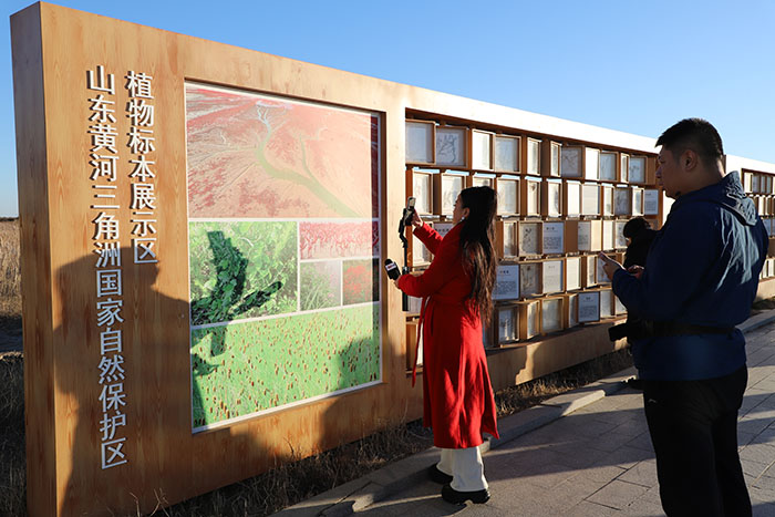在保护区的观测点,一群鸿雁悠哉悠哉地向游人游来,又悠哉悠哉地向芦苇荡栖息地游去。保护区讲解员介绍说:“蓝黄交汇带的浅滩是候鸟的‘天然食堂’,湿地是‘繁殖育雏场’,黄河泥沙淤积形成的潮间带,为保护区内的鸟类提供了丰富的甲壳类、鱼类食物;而淡水补给形成的芦苇荡、柽柳林,成为鸟类躲避天敌的安全屏障。”