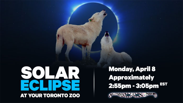 4月8日当天,如果你选择去多伦多动物园看日食,动物园将免费提供日食眼镜(送完即止)。动物园要求游客特别注意日食期间动物们所发生的任何行为变化。动物园在其网站上写道:“我们鼓励游客在日食开始前抵达您最喜欢的动物栖息地,并做好观察准备。”