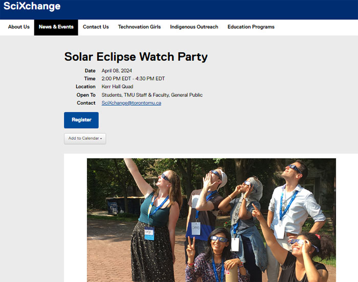 网址:https://www.torontomu.ca/scixchange/SXCnewsandevents/2024/04/eclipse2024/