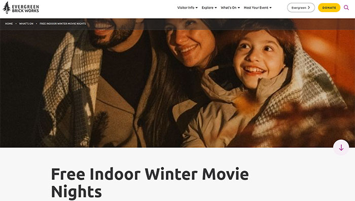 网址:https://www.evergreen.ca/evergreen-brick-work/events/free-indoor-movie-nights/