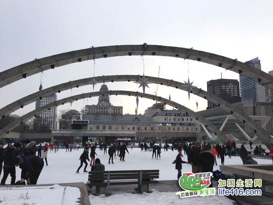 Nathan Phillips Square 滑冰场位于Bay 夹Queen 的西北角,坐TTC 地铁到这里滑冰是最方便的,在Queen站下车即可。点击查看google地图