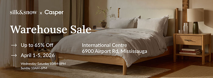 【加国生活网专稿】随着春季来临,北美两大知名寝具品牌 Silk & Snow 与 Casper Canada 在International Centre 合作举办的多伦多年度仓储促销,床上用品、床垫等最高65%折扣,机会难得,不容错过!
