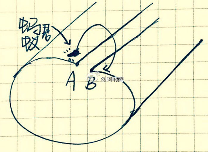 再解释一遍,在这个图示上,蚂蚁从A点消失,B点出现,你们想想,就是这意思,卷曲产生新的维度!