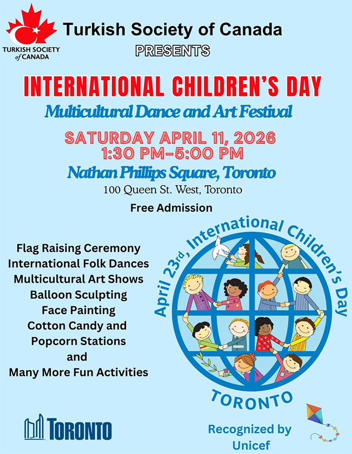 【加国生活网】多伦多是个多元文化的城市,拥有来自世界各地的儿童们。基于这个原因,加拿大土尔其社区组织了The International Children's Day – Multicultural Dance and Art Festival 国际儿童节—多元文化舞蹈艺术节,旨在让不同族裔的儿童们汇聚在一起,互相了解不同族裔的文化和艺术。艺术节将于下午1:30开始,首先是开幕致辞和升旗仪式,届时将奏响土耳其和加拿大国歌。随后,精彩纷呈的节目将轮番上演,包括多元文化舞蹈表演、合唱演出以及由代表多伦多多元文化的儿童带来的民俗表演。孩子们可以参与各种趣味十足的互动活动,例如气球造型、爆米花和棉花糖摊位、充气游乐设施以及由社区团体举办的多元文化艺术展览。这个充满欢乐的环境让孩子们有机会交流、玩耍、建立友谊,同时体验加拿大丰富的文化多样性。