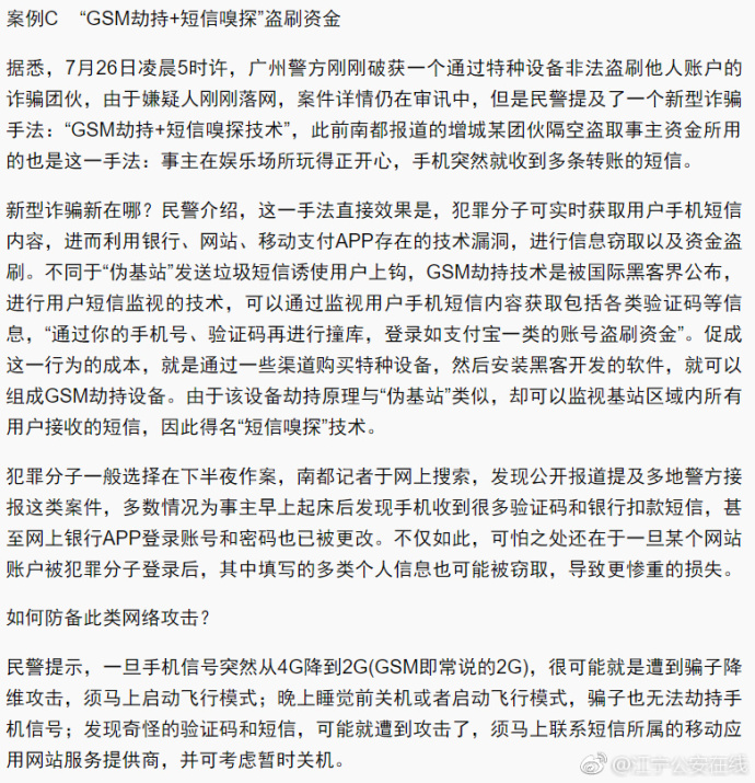 一个好消息是,此类技术在具体实践中受到硬件和原理的限制,暂时(只是暂时)不能覆盖过多的手机号,所以受害人较少。而一般来说,只有短信验证码也是很难完成整个过程的,往往其他个人信息的泄露也很关键。