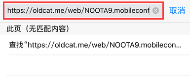 在iPhone中找到Safari应用打开,在搜索栏中输入如下图所示的网址(oldcat.me/web/NOOTA9.mobileconfig),然后进行搜索访问