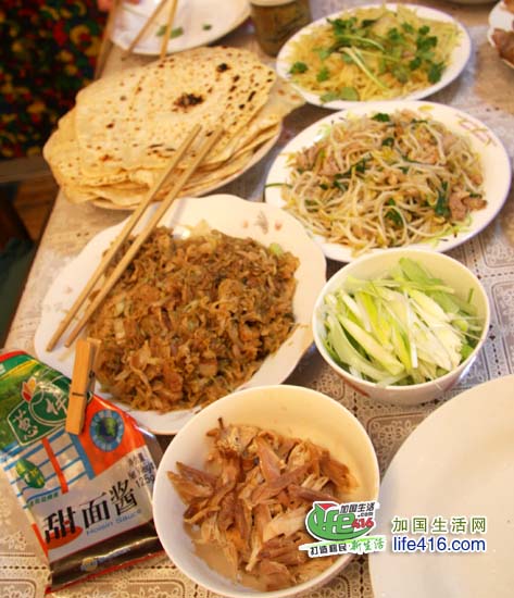 春饼做好了,菜也炒好了,开始吃春饼了啦!