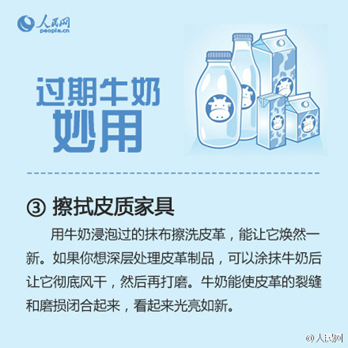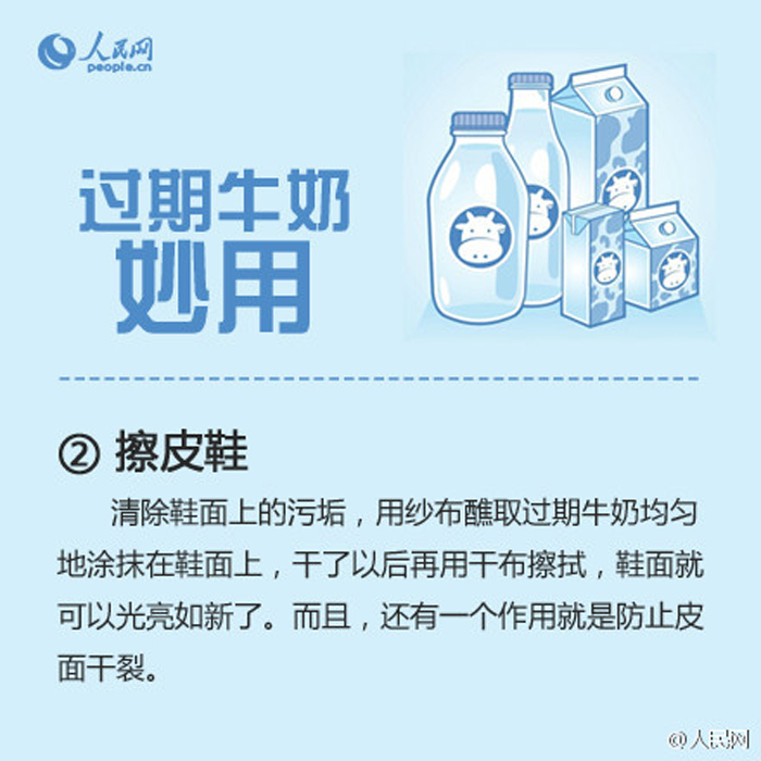 牛奶在开启包装以后,如放置时间过长,就会变质且不能食用,倒了又觉得挺可惜的。别着急扔!过期变质的牛奶依然有利用价值:擦地板、擦皮鞋、去油渍、修复瓷器裂痕、做鱼饵……