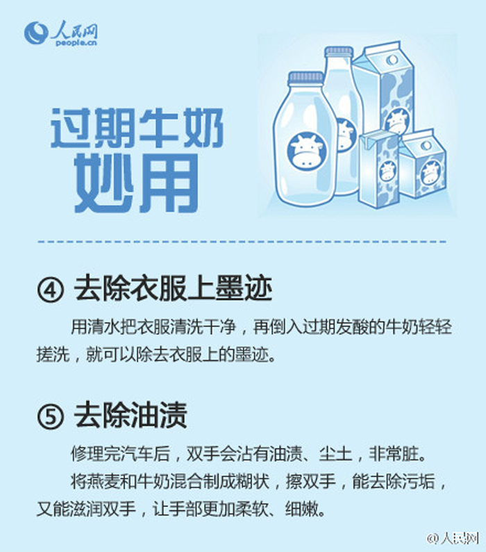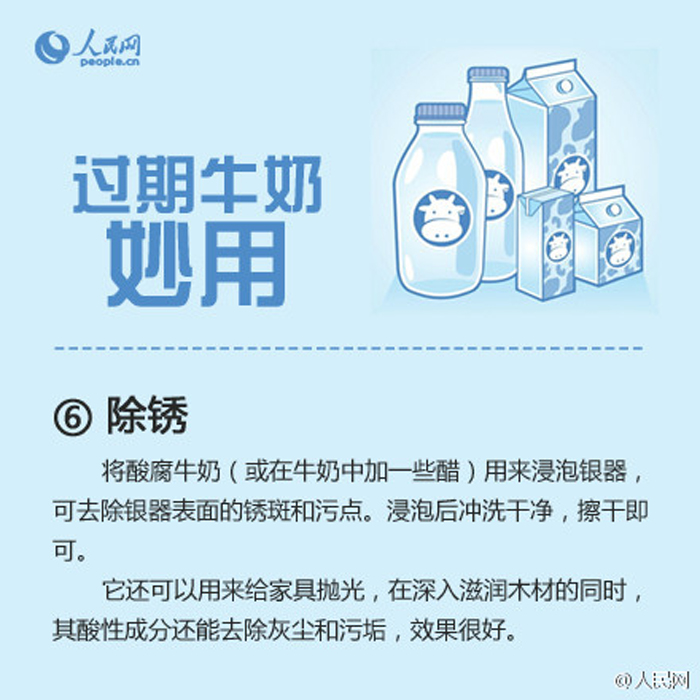 文章来源:养生中国牛奶在开启包装以后,如放置时间过长,就会变质且不能食用,倒了又觉得挺可惜的。别着急扔!过期变质的牛奶依然有利用价值:擦地板、擦皮鞋、去油渍、修复瓷器裂痕、做鱼饵……