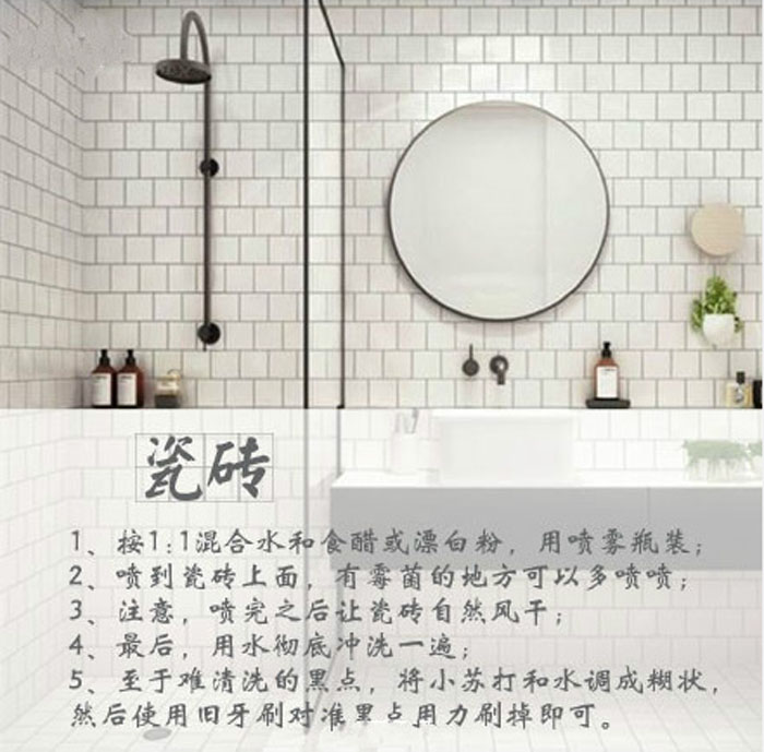 由于长期潮湿、通风不足,卫生间的瓷砖和浴帘常常会长霉点、毛巾牙刷剃须刀会生细菌、镜子和水龙头会沾水渍……如何清洁,头疼吗?其实清洁浴室并没那么复杂!分享9个清洁小技巧,几分钟就能大变样!周末抽空给浴室洗刷刷吧。