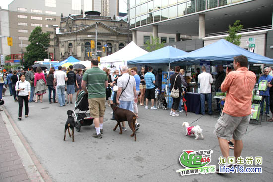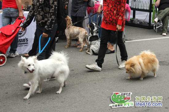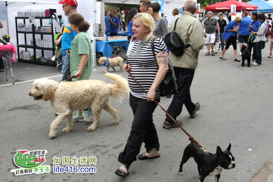 在宠物犬狂欢节中,最高兴的要数狗狗们了,它们遇到了同类,享受到了关爱,成了真正的明星。在Dog Show上,有狗粮、狗营养品、狗服装、狗玩具、狗卧具、狗交通工具、狗化妆品的帐篷,还有狗的训练课程、狗的保健课程以及为狗寻找合适配偶的场所……作为加拿大的狗狗们,简直幸福得像花儿一样……