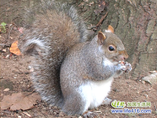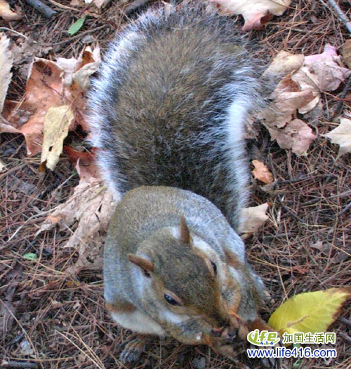 【加国生活网小编编后按】从此以后,小编凡是到多伦多爱德华公园(Edwards Gardens)散步的时候,都记得带些吃的,一般春天和夏天的时候食物丰富,小松鼠或是小鸟一般不太和人接触,带了食物也找不到它们。但到了深秋叶子落尽后就不一样了,往往吹吹口哨,拿装食物的袋子晃出些声音,小动物们听到或看到了,就会出来吃。那天,小编原来打算是喂小松鼠们的,没想到一只小鸟冲了出来,也要吃的,于是小编让老公拍下了视频: