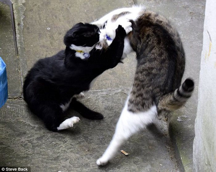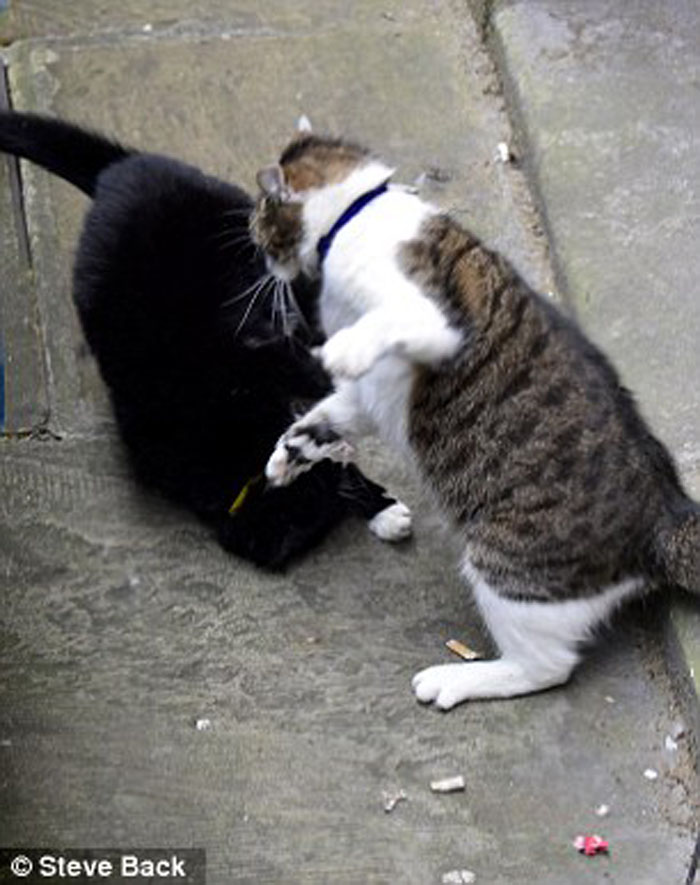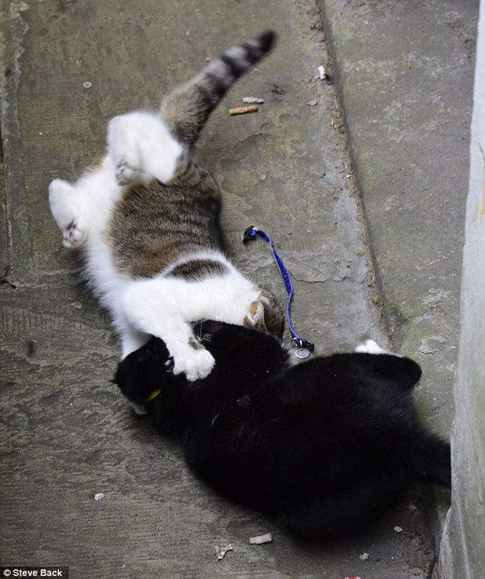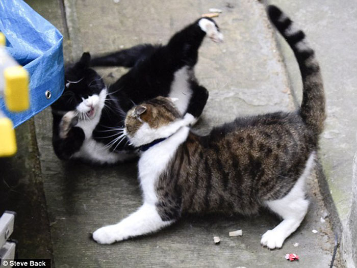 英国捕鼠总管Larry和外交部捕鼠大臣Palmerston又打起来了,这两只真是每天都在干架。。誓死要分出谁是唐宁街扛把子的感。