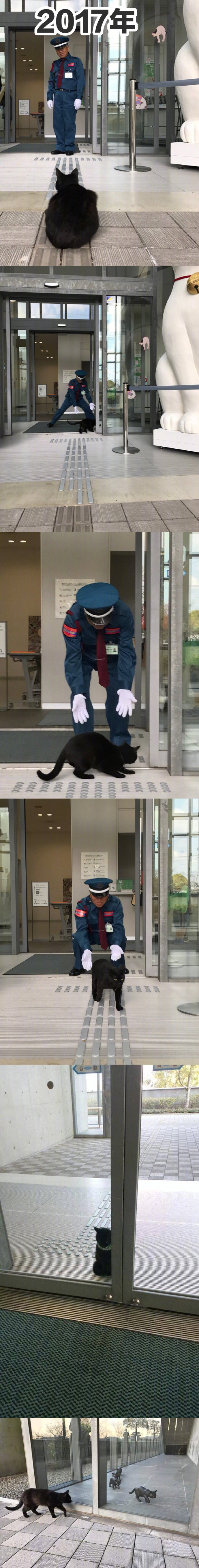 岛国尾道市立美术馆去年举办“招财猫”主题美术展时,一只黑猫试图无票入馆,和“小伙伴”汇合,被警卫郑重拦下;没想到今年黑猫卷土重来,还带了一只大橘,合伙闯关,再次失败...警卫受访表示,原来还只是偶尔偷闯,现在几乎每天都来,安保压力极大。