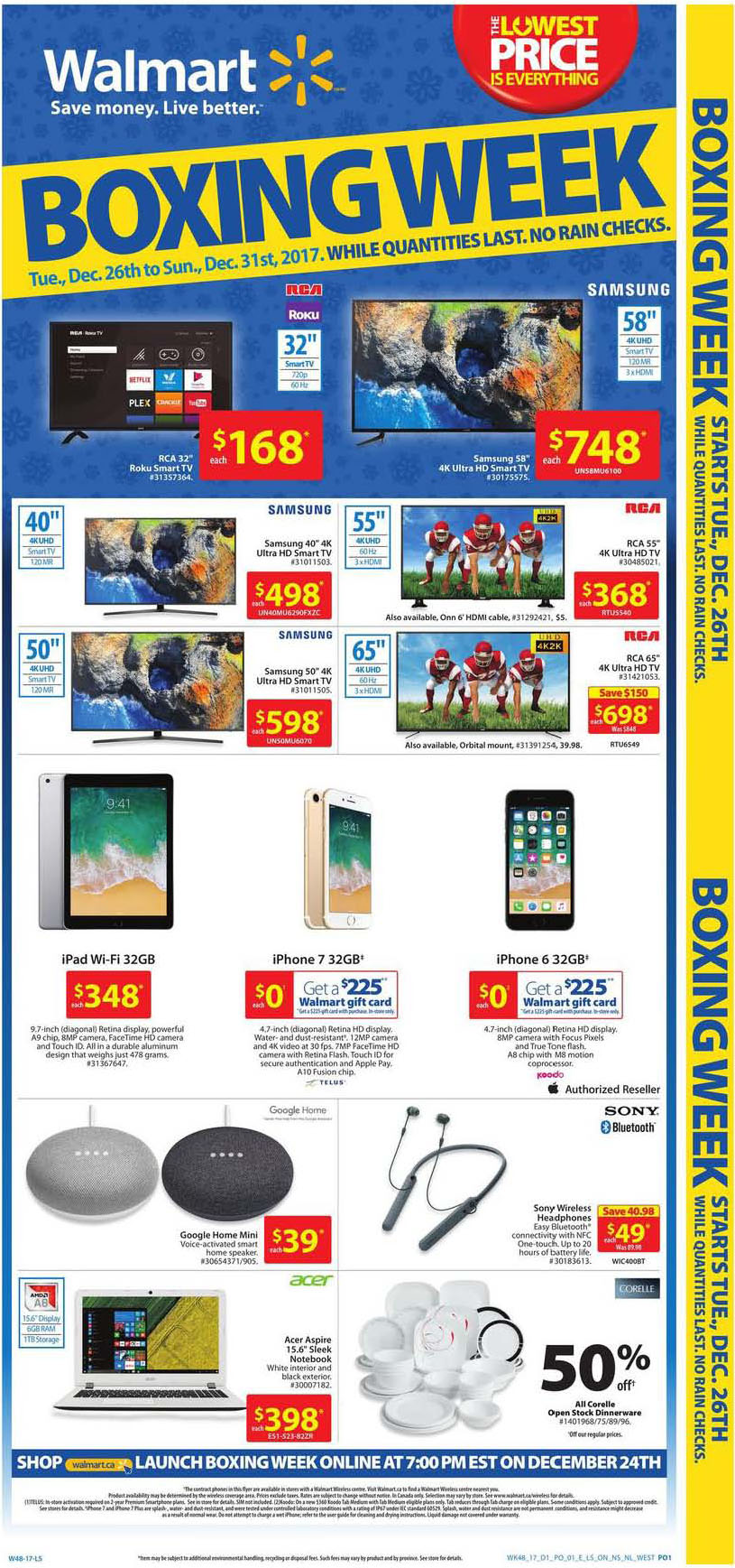 【加国生活网】以下是加拿大Walmart在2017年Boxing Day的促销信息,各个城市不同,促销商品可能会有所不同,请点击官网查询更精确的信息:https://www.walmart.ca/flyer
