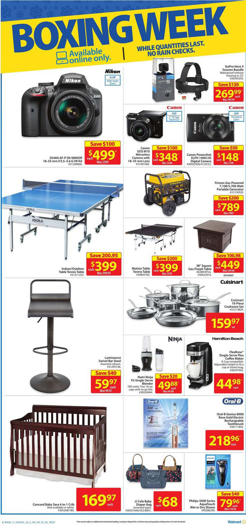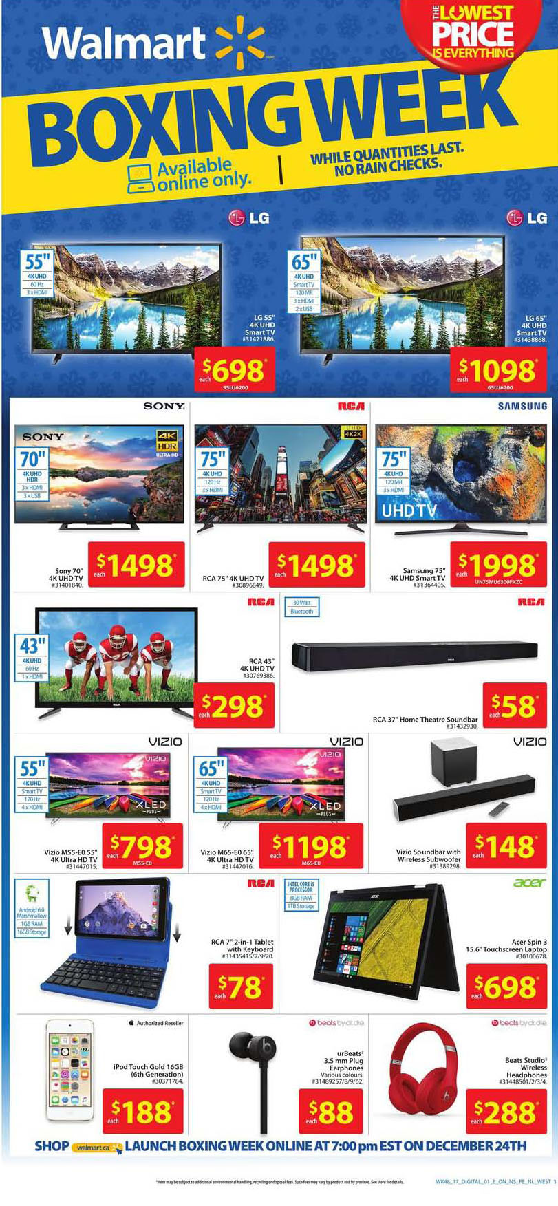 【加国生活网】以下是加拿大Walmart在2017年Boxing Day的促销信息,各个城市不同,促销商品可能会有所不同,请点击官网查询更精确的信息:https://www.walmart.ca/flyer
