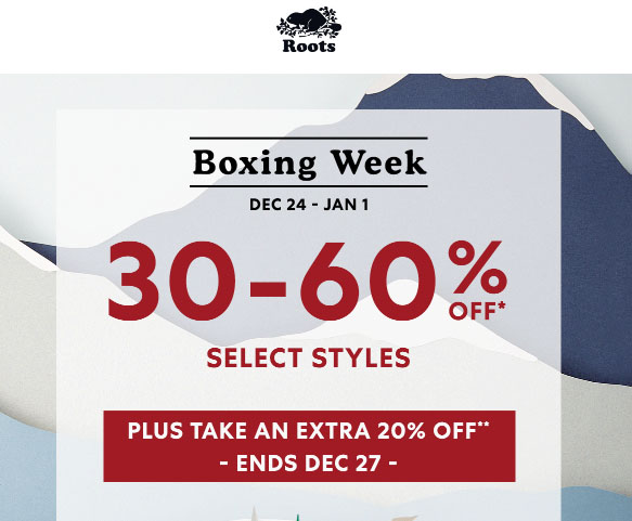Roots在今年的BOXING DAY貌似要大出血啊,有些款式竟然会打折60% OFF,这可是以往都没有的折扣:更多打折促销信息请点击:https://www.roots.com