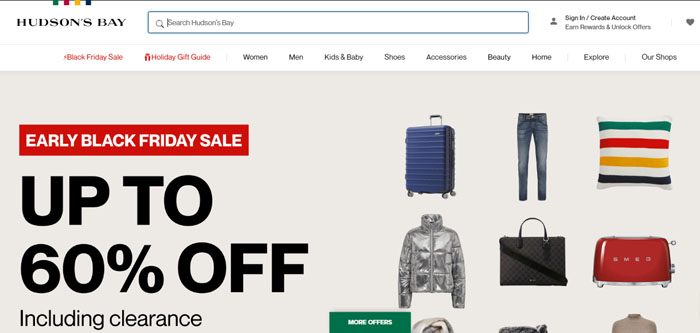 【加国生活网】加拿大Bay商场的黑五促销已经提前一周在实体店和网站同时举行了,好多产品up to 60% off,包括已经打折商品,大家赶紧去淘货吧。如果你已经看好了某个款式的衣服或鞋子,赶紧趁着现在打折力度大时去扫货,女装 up to 40% off、男装up to 30% off。更多优惠请到官网查询:https://www.thebay.com/