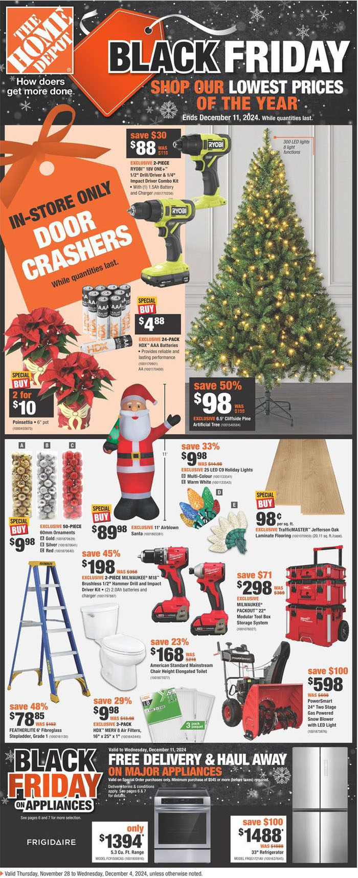 【加国生活网专稿】Home Depot 在今年也是早早的从11月21日就开始进行黑五促销了,有好多吸引人的打折,比如Milwaukee吹叶机$148(原价$248)、68 升储物箱$6.97、18V 雪铲套件$198(优惠了$70)。在11月29日当天,该店还会推出“Door Crashers”打折商品,欢迎大家去抢购,因为推出的是承诺的“全年最低价”商品,更多促销信息请查询:https://www.homedepot.ca/weekly-flyer