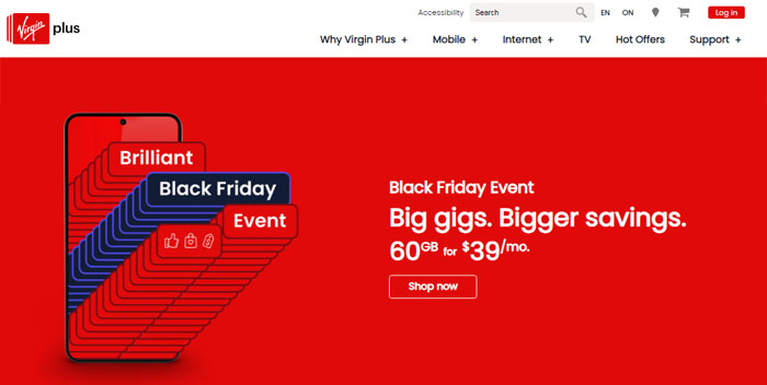 Virgin推出的主要黑五数据计划优惠价格为每月$39可获得60GB数据套餐。