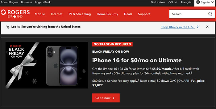 Rogers的黑五促销活动包括新手机打折和套餐打折(打电话给客服代表,客服代表能给你的优惠或许不同):
