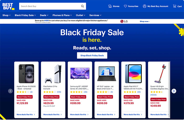 【加国生活网】Best Buy也在今年提前一周开始进行黑五打折促销,很多商品打折的力度很诱人,比如大电视优惠了$350花600刀就能买到、HP笔记本优惠了300刀700就能拿下;苹果手机iphone 16优惠了150刀最后1130就能买到等等。更多详情请到官就能网查询:https://www.bestbuy.ca/en-ca