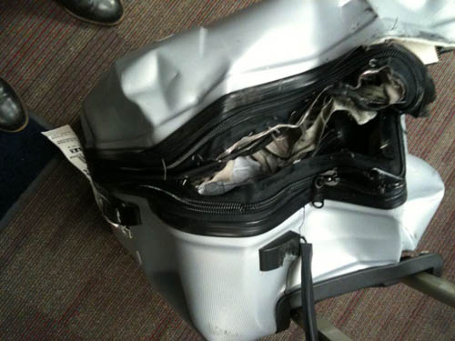 看看,这就是摔得惨不忍睹的严重变形的行李箱!