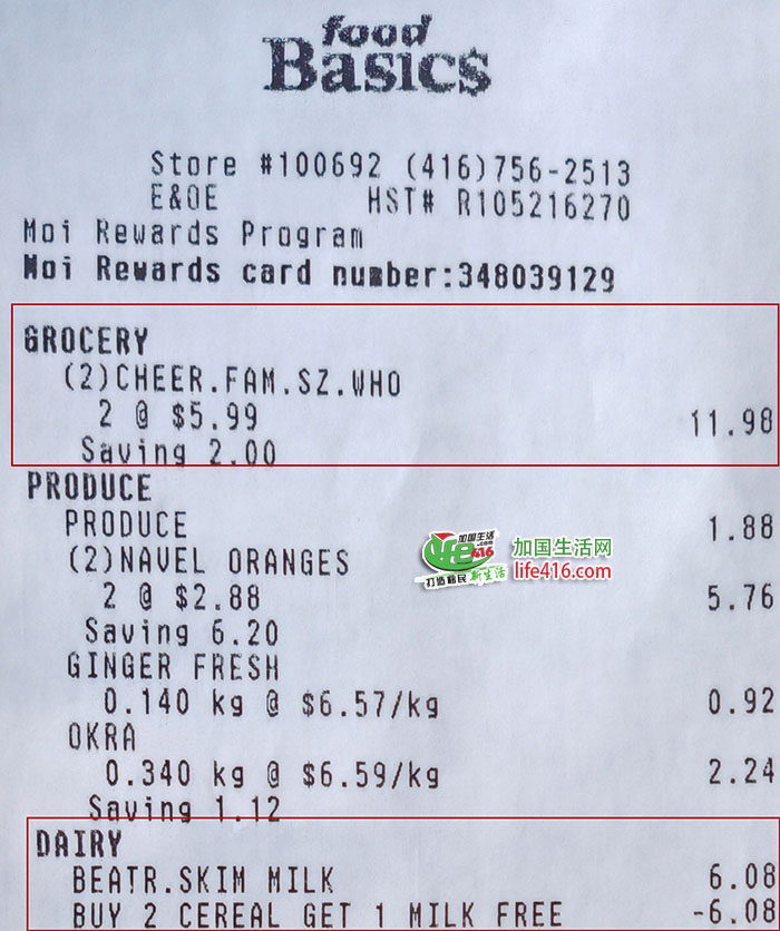 另外,Food Basics 也开启积分促销模式了,采用的是来自蒙特利尔的MOI rewards。在收银台那里向工作人员要一个积分卡,或者是下载一个Food Basics APP自动生成一个电子积分卡都可以。积分的方式和别的超市一样,每周有特定的能获得积分的商品,购买那些商品才能积分。