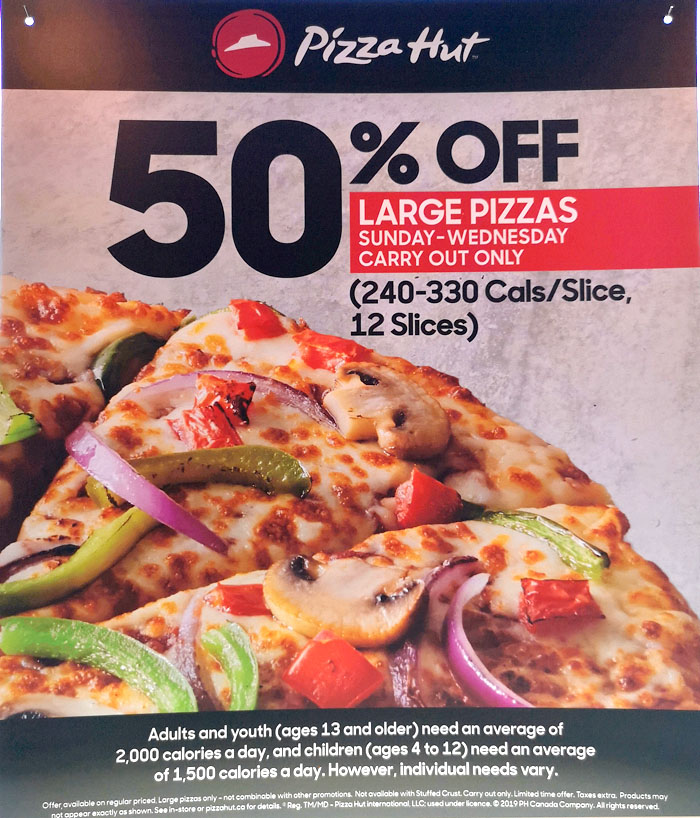 【加国生活网】喜欢吃Pizzahut的朋友们注意了,PizzaHut 最近推出从周日到周三大号Pizza Hut 半价的促销,小编曾在PizzaHut网站的Deal里看到过,也曾经下单订过,即从周日到周三(不是从周三到周日),订大号Pizza 半价,原价$22.89,半价后是$12.15,可以订所有口味,很合算。