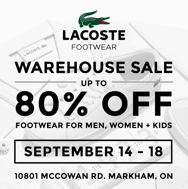 【加国生活网专稿】The Lacoste Footwear & Toronto Golf Warehouse Sale将于2016年9月14日至18日举行,两个大型的促销活动合在一个场地举行(2 Huge Sales, 1 Location)。机会难得,不要错过!!