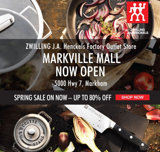 【加国生活网】双立人ZWILLING于2018年3月22日起在Markville Mall正式开店啦!这是一家厂店直销店名叫ZWILLING J.A. Henckels Factory Outlet Store,目前正在进行春季促销,全场Up to 70% off,喜欢这个牌子厨具的朋友们不妨去看看。