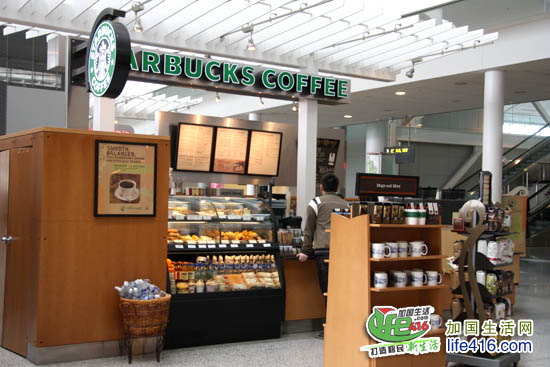 登机大厅里还有咖啡店、快餐店,一点也不用担心候机的时候肚子饿。