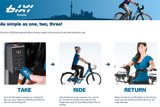 多伦多市政府近日表示,上述是全北美首项大型共用自行车计划,使用者主要以骑自行车去补公车服务的不足。北美地区包括Minneapolis、Washington D.C.、London、Melbourne、Montreal等城市都已经开始运作了这项计划。
