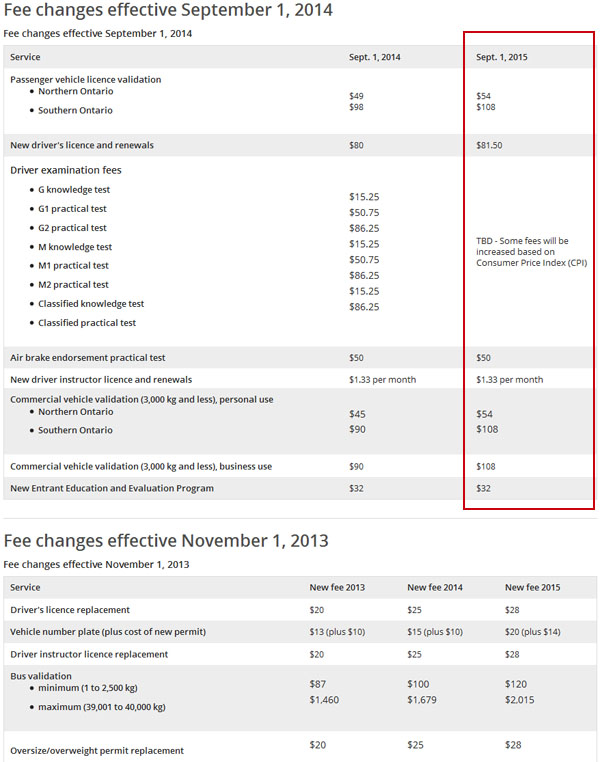 根据加国生活网之前的报道资料显示,安省汽车驾照费用从2012年起就一直在上涨,就拿驾照更新费用来说,2012年9月1日起上涨至$82,2013年9月1日起上涨至$90,2014年9月1日上涨$98,2015年9月1日上涨至$108。更多相关文章,请点击下方的绿色标签:加拿大驾照