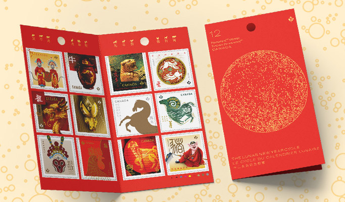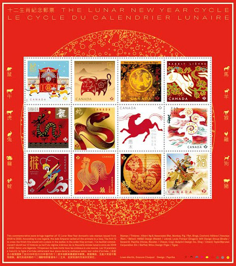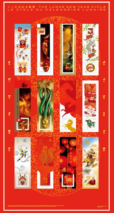 加拿大邮局推出充满喜庆的农历新年邮票系列合订本 特别收藏版集合了过去12年生肖邮票