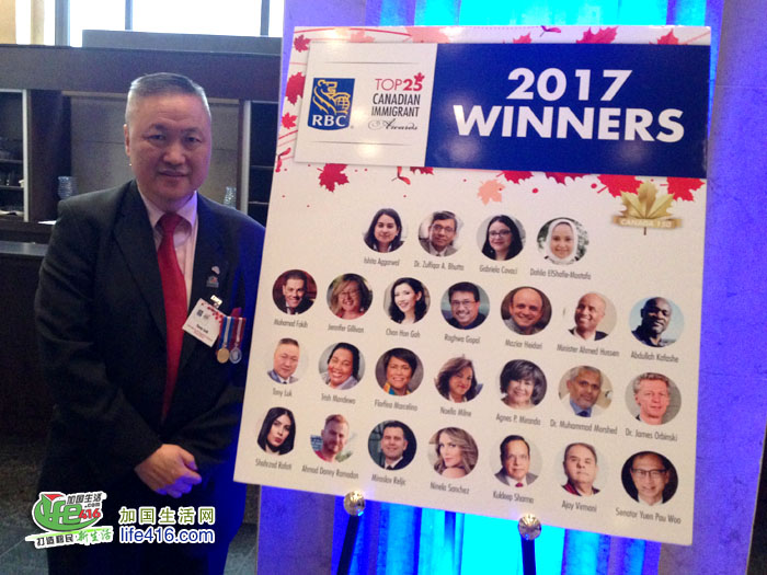 “RBC最杰出25位加拿大移民奖”于2017年6月27日在多伦多举行颁奖典礼,表扬各得奖者;而温哥华的颁奖礼则于6月29日举行。此奖项计划非常荣幸地获得了冠名赞助商RBC皇家银行全力支持。大会更于廿五位得奖者中选出两位,颁予RBC企业家奖(RBC Entrepreneur Award) 及新增的杰出青年奖(Youth Award)两个特别奖项。