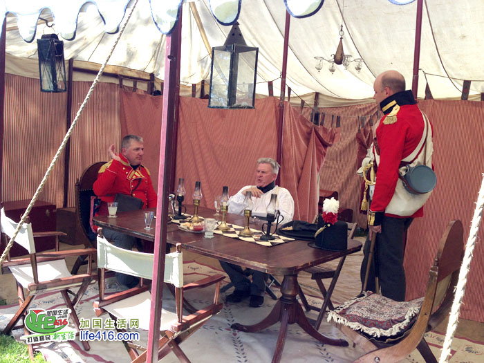 穿红色衣服的是英军,这几位是英军的将领,住的帐篷明显地高大尚许多哈