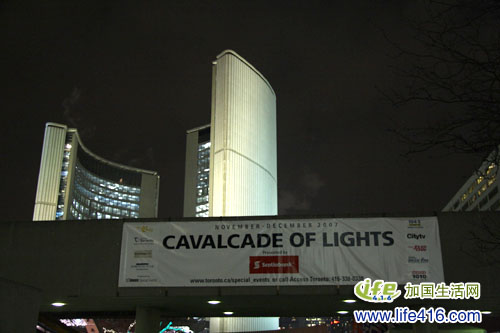 市政府门前,Cavalcade of Lights是市政府每年都搞的活动,上面看到的灯火辉煌的街边彩灯都是此次活动的一部分。