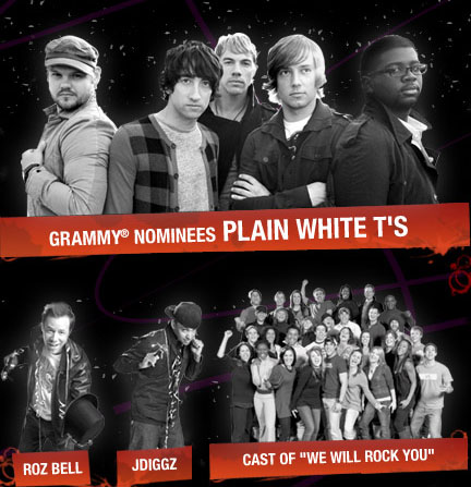 晚会请来了一些著名的歌星和演唱团体,象获得Grammy提名的Plain White T'S以及目前正在多伦多火爆演出的音乐剧《We will Rock You》