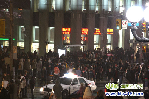 这张是我躲在旧市政府大楼的门前的屋檐下,拍下的晚会结束后散场的情景。