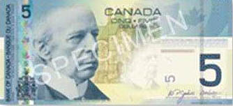 5元纸币上的人物:Sir Wilfrid Laurier —— 加拿大第七任总理(7th Prime Minister of Canada),也是首位法裔加拿大总理。