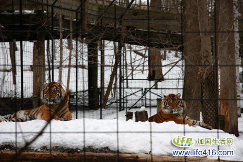 虽然地上有雪,但对于这两头皮毛厚实的大老虎来说,趴在雪地里可是一大享受,这两位趴的姿式让我想起我了家养的猫