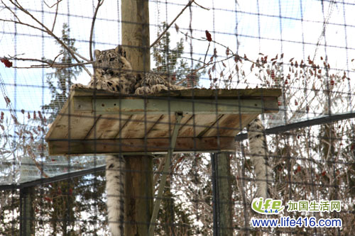 天不太冷,两头雪豹正懒懒地趴在那里,时不时地摇摇它们俩美丽的大尾巴……