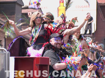 我们看同性恋大游行就是看个热闹,混个眼热,再怎么说,这也是加拿大的一大特色。怎么样,和我们一起眼热眼热吧。