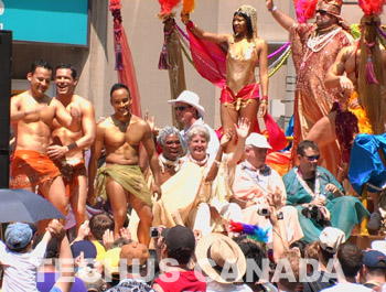 多伦多市长大多支持同性恋,从上届的拉士曼,到这届的苗大伟。今年,苗大伟又带领着一班市议员走在游行队伍中。他说,同性恋大游行是整个多伦多的盛事,我们尊重人权,也尊重每个人的生活方式选择,多伦多人以此傲。其实,还有一点他也心知肚明,这项活动能够为多伦多本地经济带来大约8,000万元的收入,这种绝好的良机,他没有不支持的理由。