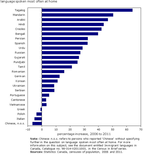 加拿大2011人口普查:说普通话的人口5年飙升51%
