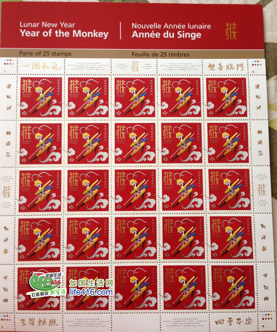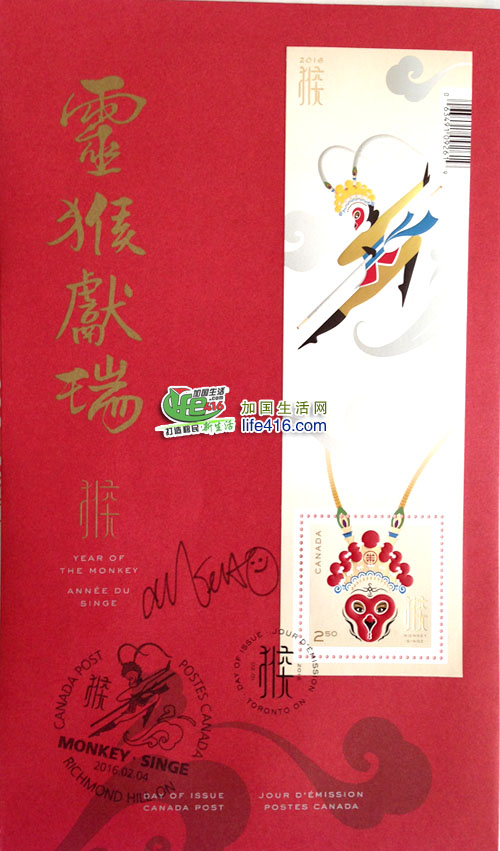 加拿大2016猴年生肖邮票于1月11日正式发行及购买攻略(组图)