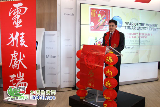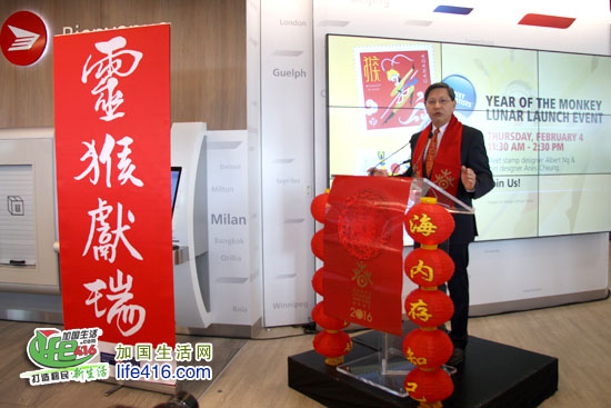 2月4日,加拿大邮局在全新的Richmond Hill outlet举行了猴年邮票的发行仪式。